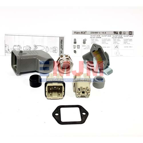 Harting dostarcza zestawy jako kompletne rozwiązania dla serii złączy HAN. Zestawy Harting oferują rozwiązania z jednym numerem części, które ułatwiają zamawianie i kontrolowanie zapasów. Każdy zestaw półokrągły zawiera wkładki męskie i żeńskie, styki z zaciskami śrubowymi, pokrywę wejściową boczną lub TOP, obudowę do montażu na przegrodzie czołowej i dławik kablowy.
