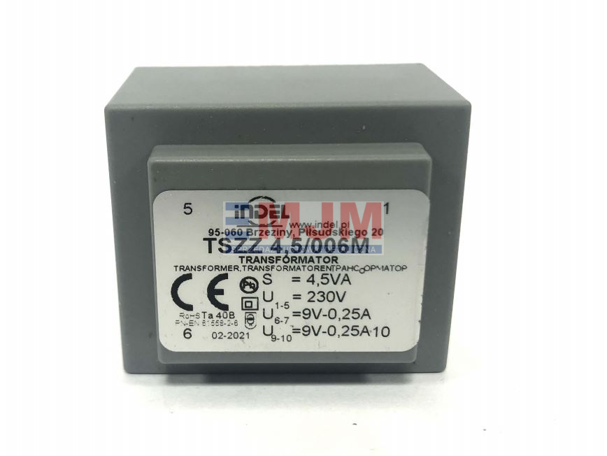 Wyprowadzenia uzwojenia wtórnego: 6-7, 9-10
